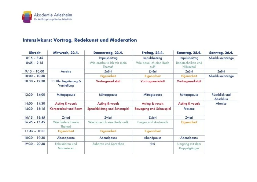 Since its founding, the Arlesheim Academy has implemented a unique teaching approach in its training programs. In response to requests, we have designed a seminar where participants can learn the art of public speaking and moderation.